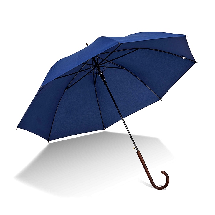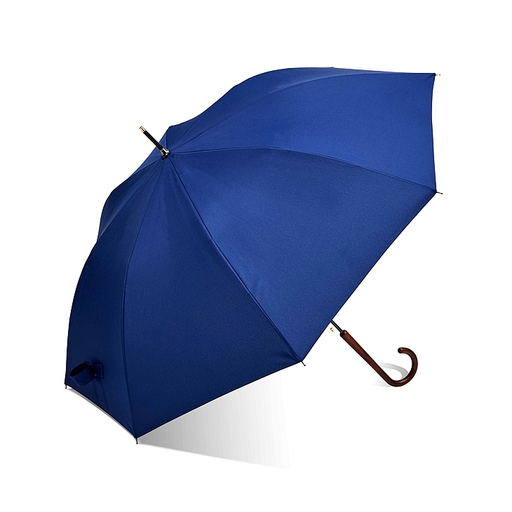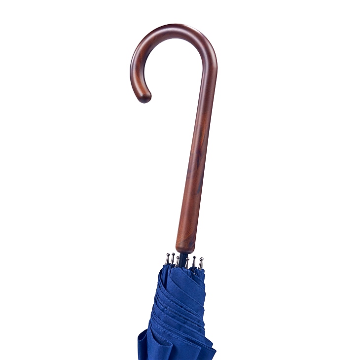 这把雨伞的亮点在于其仿胡桃木颜色的弯曲手柄,展现出一种精致而优雅的外观。